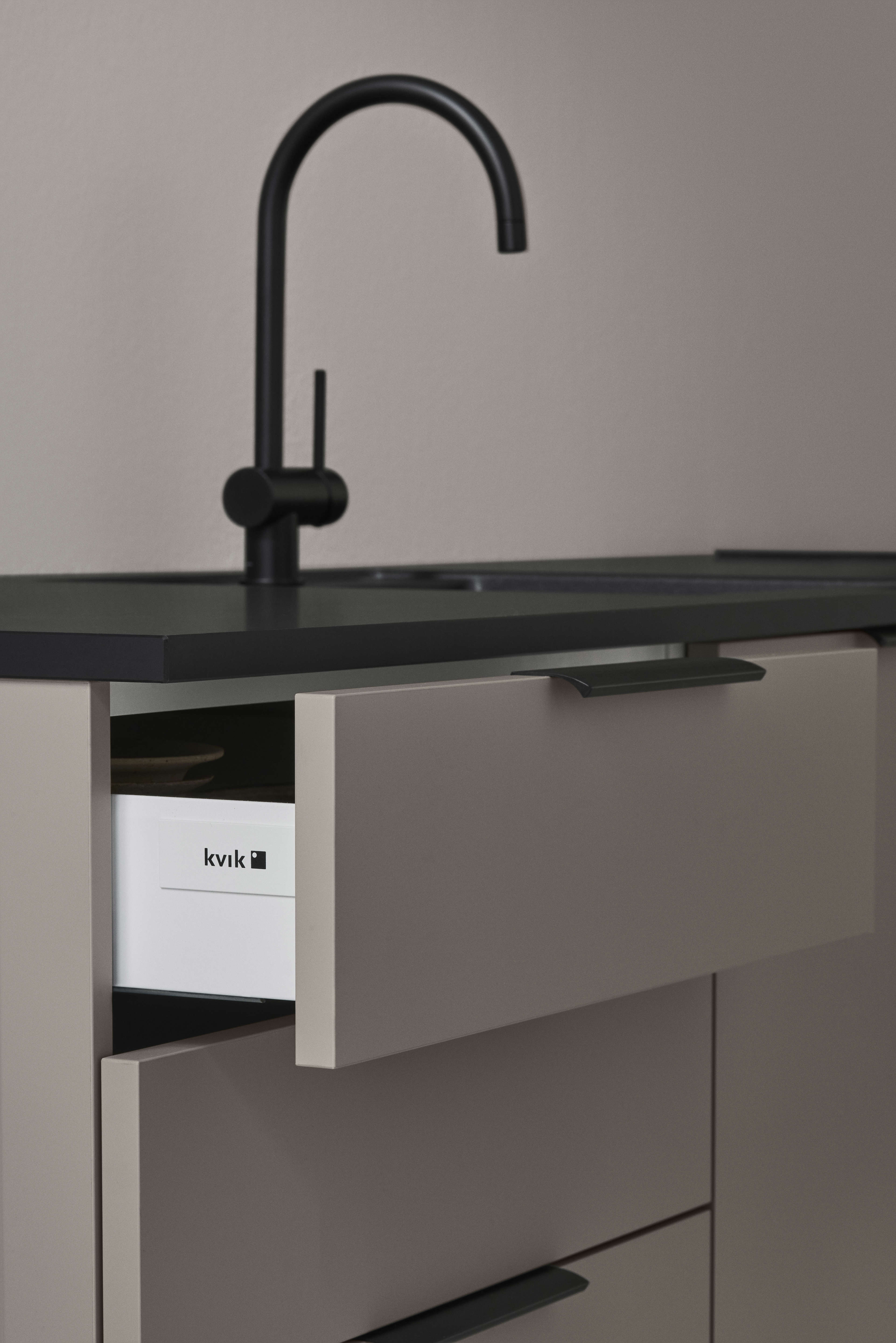 Skönheten hos dansk design lyser igenom i Ombras smarta tre-lådslook – oavsett om det faktiskt är lådor eller helt enkelt luckor blir de släta runda stenformade handtagen själva grunden för designen. De här fronterna är lätta att öppna även för dina små medhjälpare i köket, och är också lätta att hålla rena och fria från fingeravtryck. Vacker och praktisk = dansk design.
