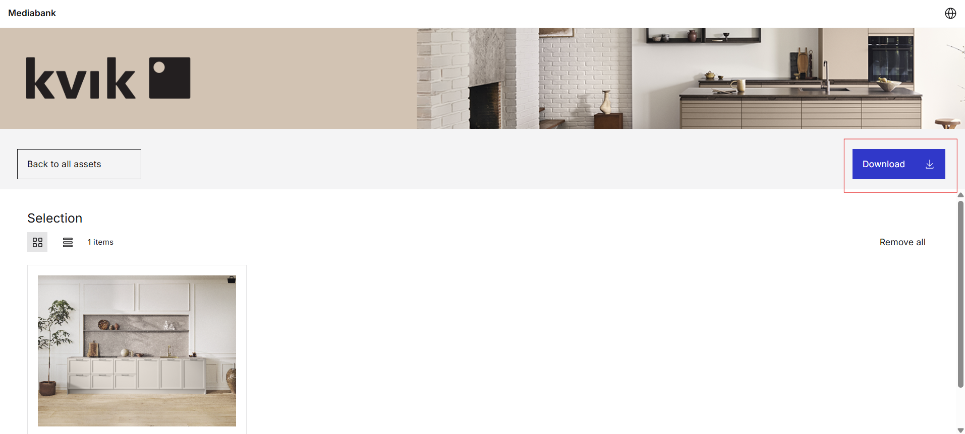 Nu har du en översikt över alla tillgångar du har valt. Klicka på nedladdning.