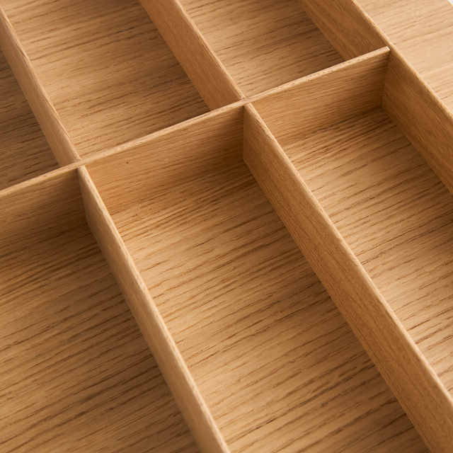 - Hållbar ek: Vår bestickinsats är tillverkad av robust ek, vilket garanterar långvarig användning och stabilitet i din köksmiljö.