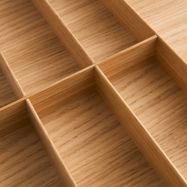 Vår bestickinsats i ek är utformad för att skapa ordning och elegans i ditt kök. Med sina generösa mått på 41,6 x 324,0 x 476,0 mm erbjuder den gott om utrymme för alla dina bestick. Det förstklassiga ekmaterialet garanterar inte bara långvarig hållbarhet utan ger också en varm, naturlig touch till dina kökslådor. Insatsens effektiva design möjliggör enkel organisering, vilket gör det enkelt att hitta rätt redskap när du behöver det. Denna funktion är särskilt fördelaktig under hektiska måltidsförberedelser och hjälper till att effektivisera din matlagningsprocess. Den eleganta ekfinishen förhöjer det estetiska intrycket i ditt kök och skapar en harmonisk och inbjudande atmosfär. Utforska fler av våra produkter online eller besök en av våra butiker för att upptäcka hur vår bestickinsats i ek kan förvandla ditt kök till ett mer organiserat och elegant utrymme. Med förvånansvärt låga priser och högkvalitativa material gör vi det enkelt att förverkliga dina köksdrömmar.Höjd (mm)