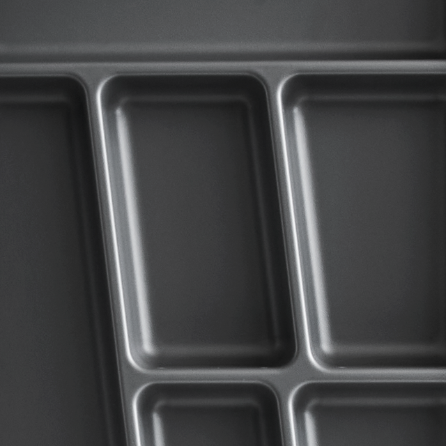 Vår bestickinsats i antracit är den perfekta lösningen för att hålla ordning i dina kökslådor. Med sin hållbara plastkonstruktion och flera fack, erbjuder den en praktisk och stilren förvaring för dina bestick och köksredskap. Den eleganta antracitfärgen ger en modern touch till ditt kök, samtidigt som den är lätt att rengöra och underhålla.