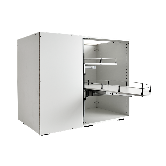 - Helt utdragbar design: Vår karusell gör det enkelt att nå alla dina köksredskap, även de längst bak i skåpet.