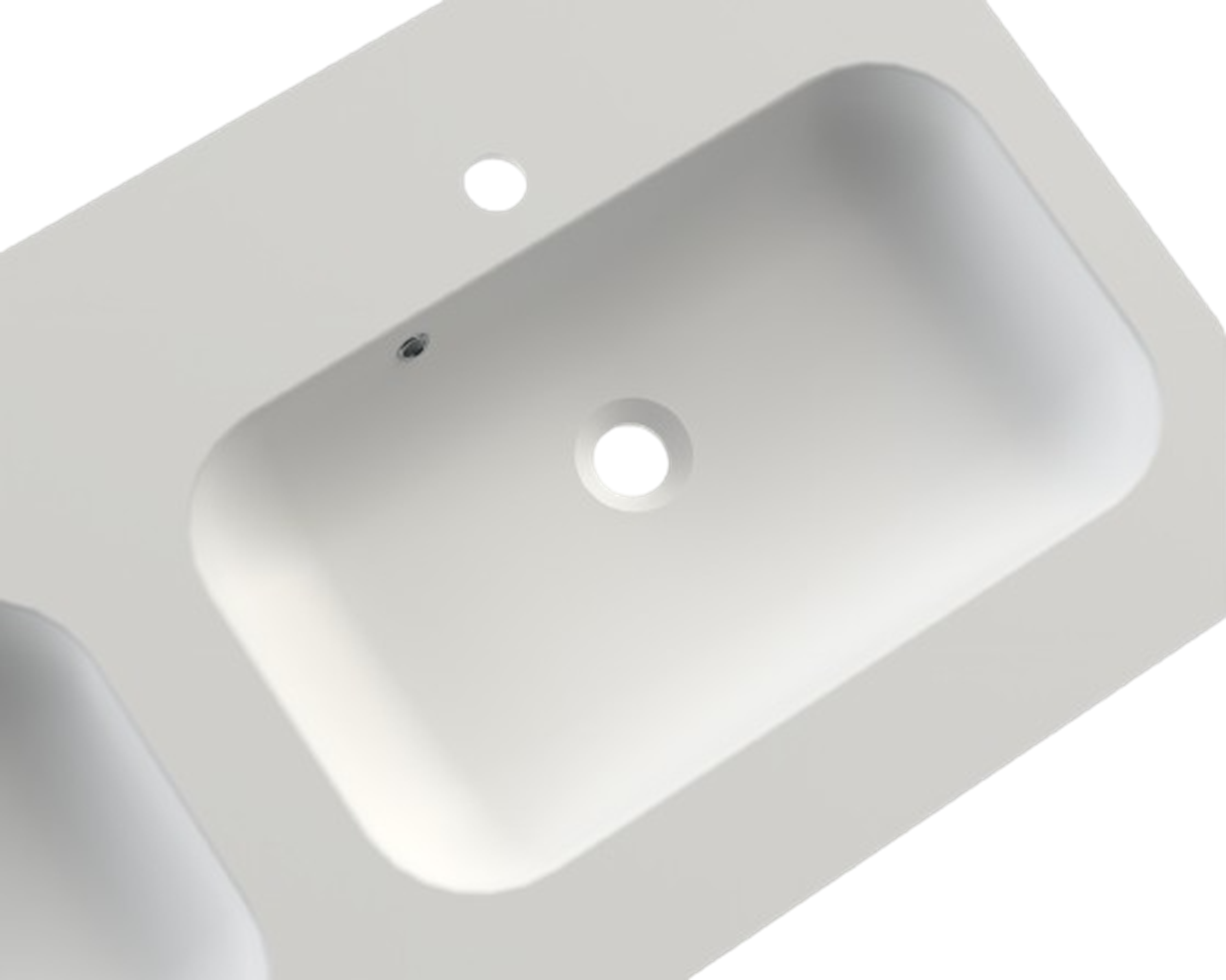 Den nordiska vita mattfinishen ger inte bara en touch av sofistikering utan förenklar också rengöringen, vilket säkerställer att ditt badrum förblir obefläckat med minimal ansträngning. Den marmorliknande designen höjer den övergripande estetiken och skapar en lyxig och lugnande atmosfär. Vårt dubbla handfat är perfekt för moderna badrum och erbjuder både stil och funktionalitet, vilket gör det till ett utmärkt val för dem som vill uppgradera sitt utrymme.