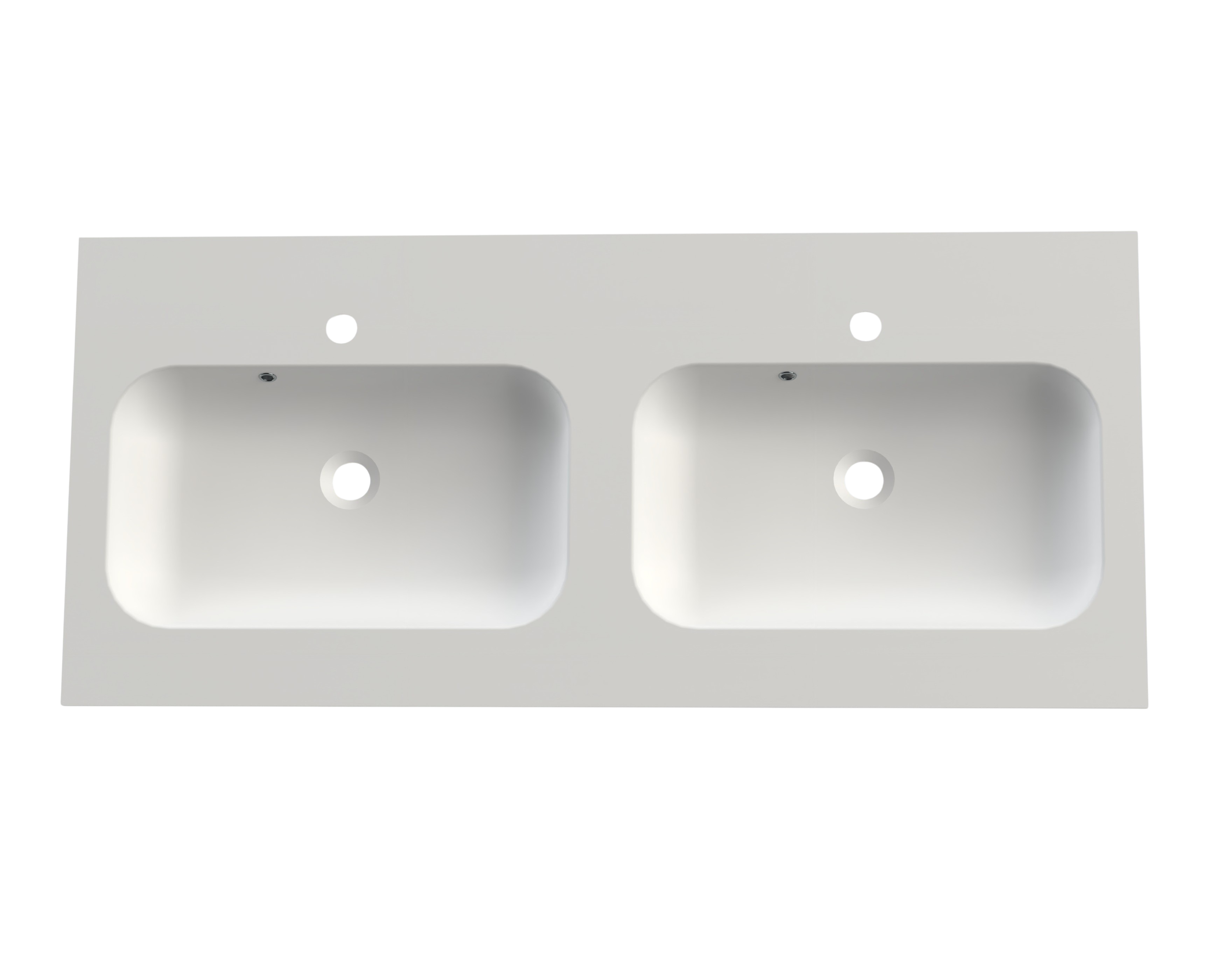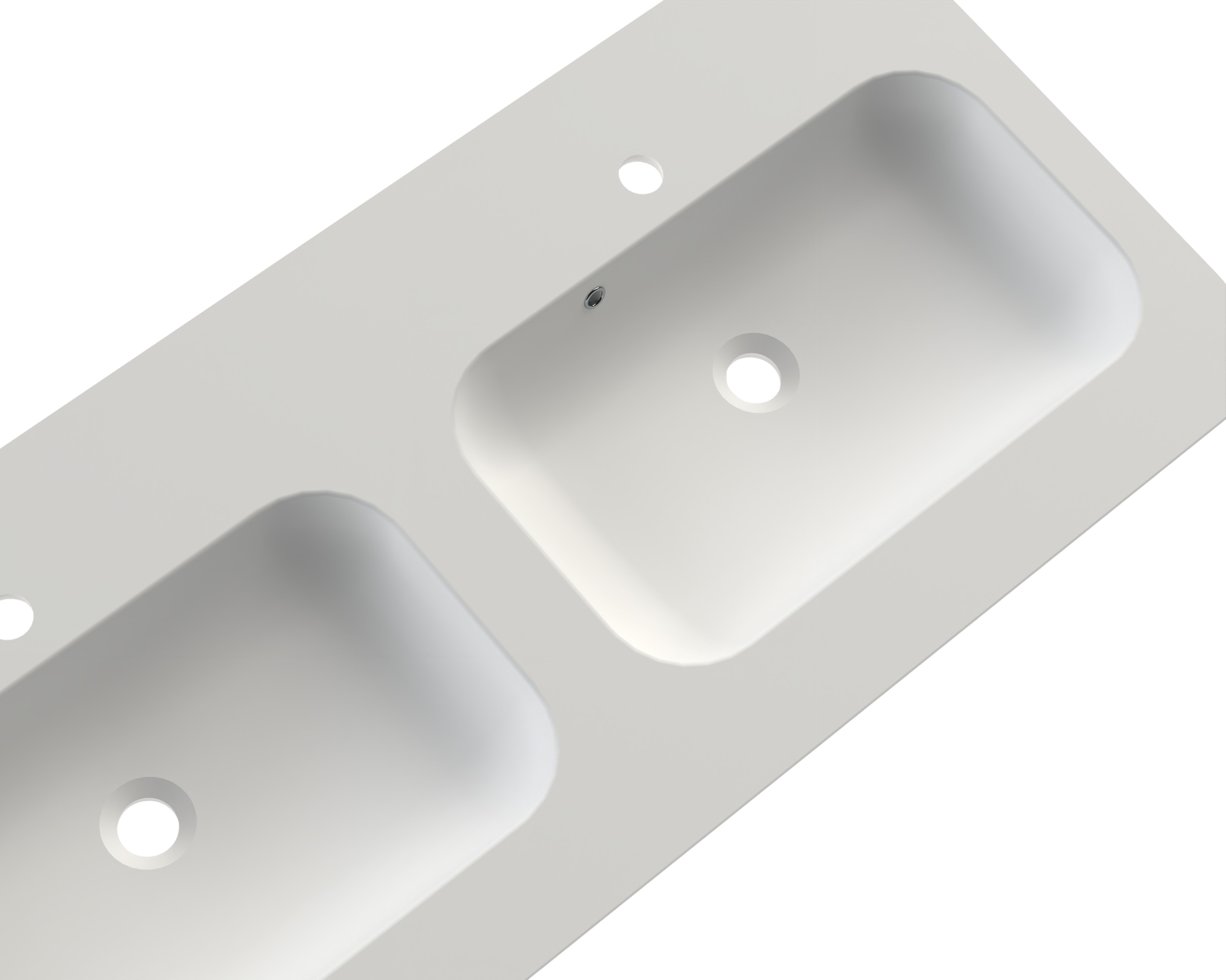 Vårt dubbla handfat KUMA Banesti 53/30 kombinerar en hållbar nordic white matt finish med en elegant marmorliknande design, vilket gör det till ett framträdande inslag i alla badrum. Dess rymliga mått (1220 x 545 x 15 mm) ger gott om utrymme för två användare, vilket effektiviserar din morgonrutin och förbättrar bekvämligheten.