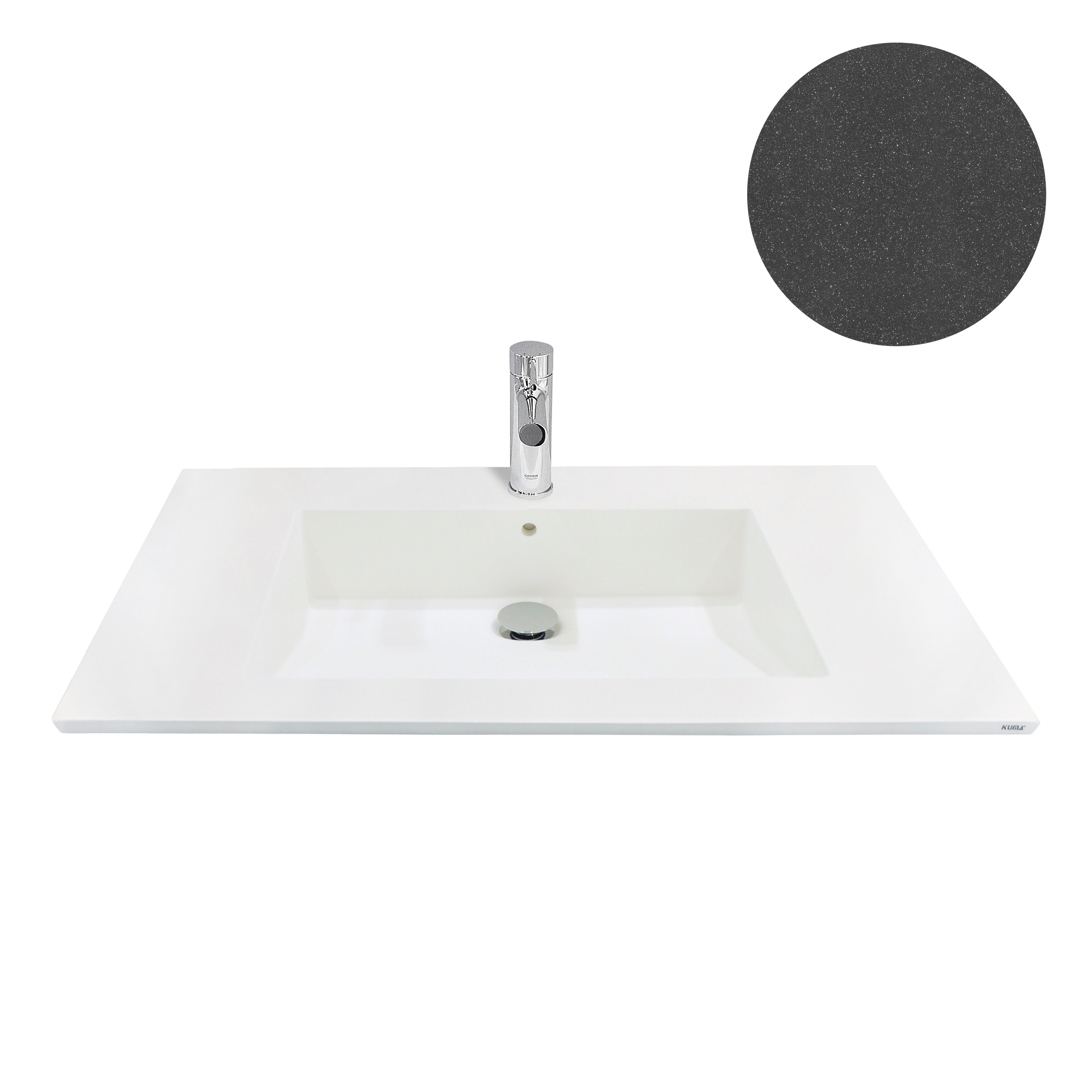 Vårt KUMA Todas handfat är utformat för att förhöja din badrumsupplevelse med sin kombination av slitstarkt granulonmaterial och elegant natthimmelmatt finish. Handfatets rymliga mått (820 x 542 x 15 mm) säkerställer att det rymmer alla dina badrumsartiklar, vilket gör det till ett praktiskt tillskott i alla hem.