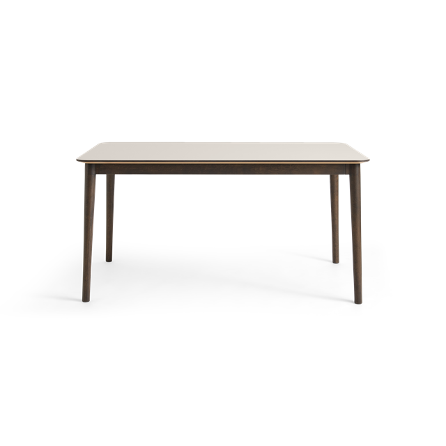 Hans Thyge & Co. har designat detta stiliga matbord. Bordet har rundade hörn och vackra, hantverksmässiga detaljer. De lätt lutande benen och den starka bordstommen i ek ger bordet stor stabilitet och styrka. Färgvalen är unika för detta bord. De matchar nämligen de populära sortimentsfärgerna på våra köksfronter. Det ger en unik möjlighet att skapa ett rum med en sammanhängande färgpalett. Bordet har en praktisk storlek utan att platsen blir för trång. I vardagen har bordet gott om plats för 4 personer, men kan rymma 6–8 personer om de yttersta platserna används. Den vackra bordstommen och bordsbenen är tillverkade i massiv ek, FSC®-certifierad. Bordsskivan är tillverkad i högkvalitativt Fenix® nanolaminat, vilket ger en ultramatt och slitstark yta. Levereras inklusive filtglidare av hög kvalitet.
