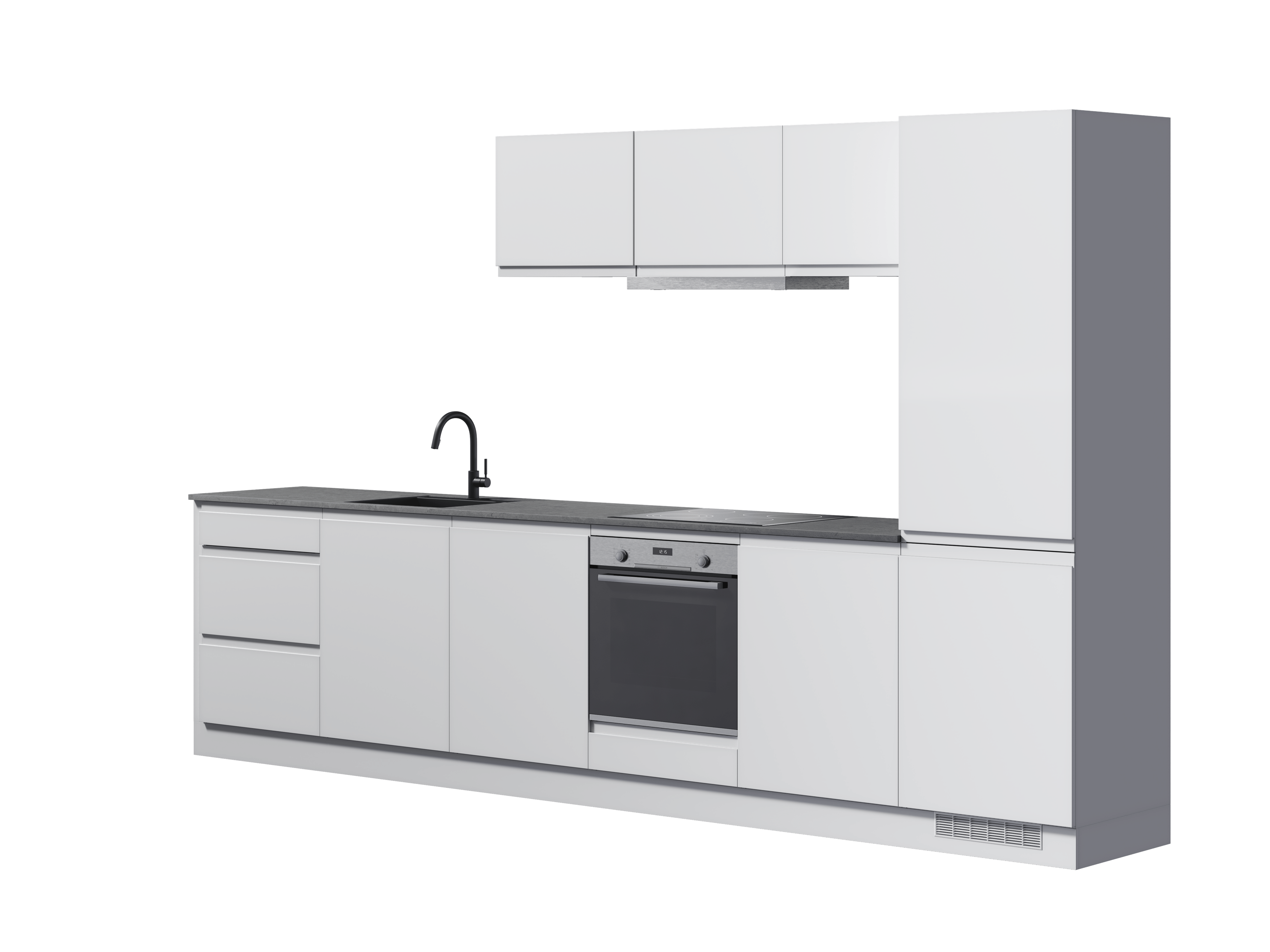 Vårt Linearis köksset utmärker sig med sin unika kombination av återvunnen mdf och en vit yta, vilket ger en perfekt lösning som förenar stil med funktionalitet. De eleganta profilinjerna vid lådor, dörrar och arbetsytor ger en modern känsla och gör det enkelt att greppa de mjukt glidande lådorna och dörrarna. Den smarta designen inkluderar intelligent lådorganisation och möjligheten att integrera diskmaskin, kyl eller frys, vilket ger en enhetlig och stilren look. För att skapa kontrast kan en inbyggd ugn eller spishäll i svart vara ett utmärkt val. Linearis köksset är perfekt för dig som vill ha ett stilrent och funktionellt kök till ett överraskande lågt pris. Besök våra butiker för att anpassa ditt kök ytterligare eller utforska våra produkter online för att förverkliga dina köksdrömmar.