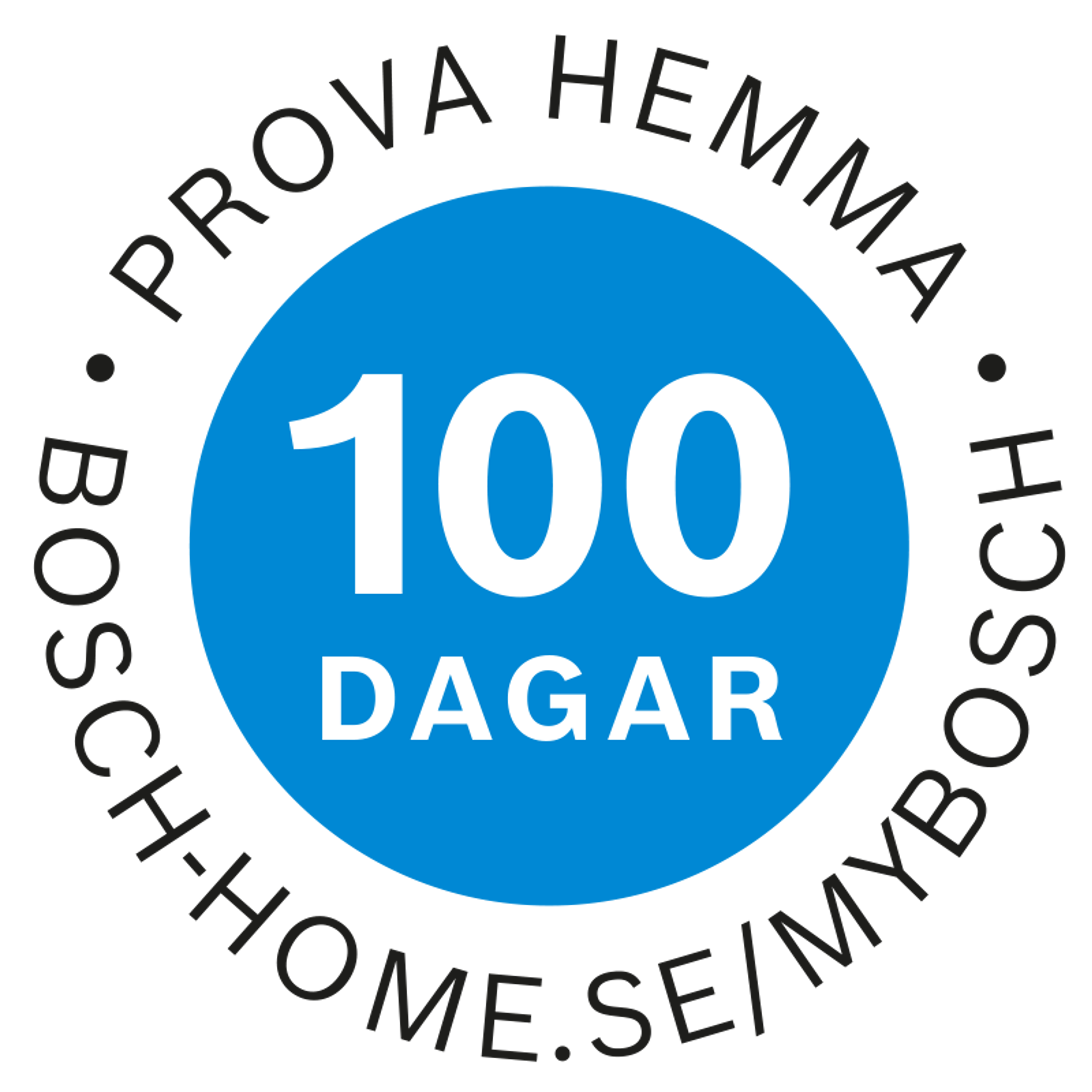 På 100 dagar hinner du lära känna din nya Bosch-produkt ordentligt. Vi vill vara säkra på att du blir nöjd, annars får du lämna tillbaka produkten. Registrera din nya Bosch-produkt inom två veckor efter inköpsdatum och du får 100 dagar på dig att ta reda på om du är 100% nöjd.