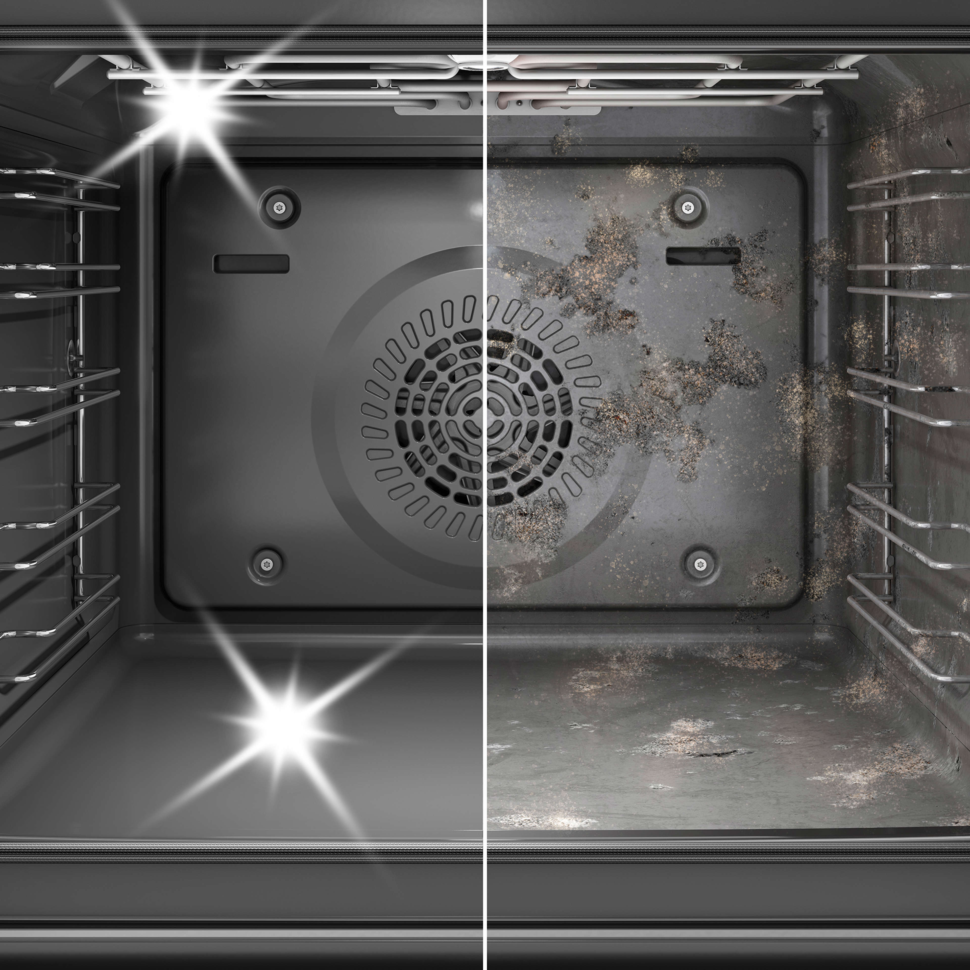 Upplev en ugn med pyrolytisk självrengöring. Välj bara funktionen, tryck start och låt din ugn göra resten. Fett och matrester bränns bort, inga kemikalier behövs. När ugnen har svalnat, torkar du enkelt och snabbt bort askan.
