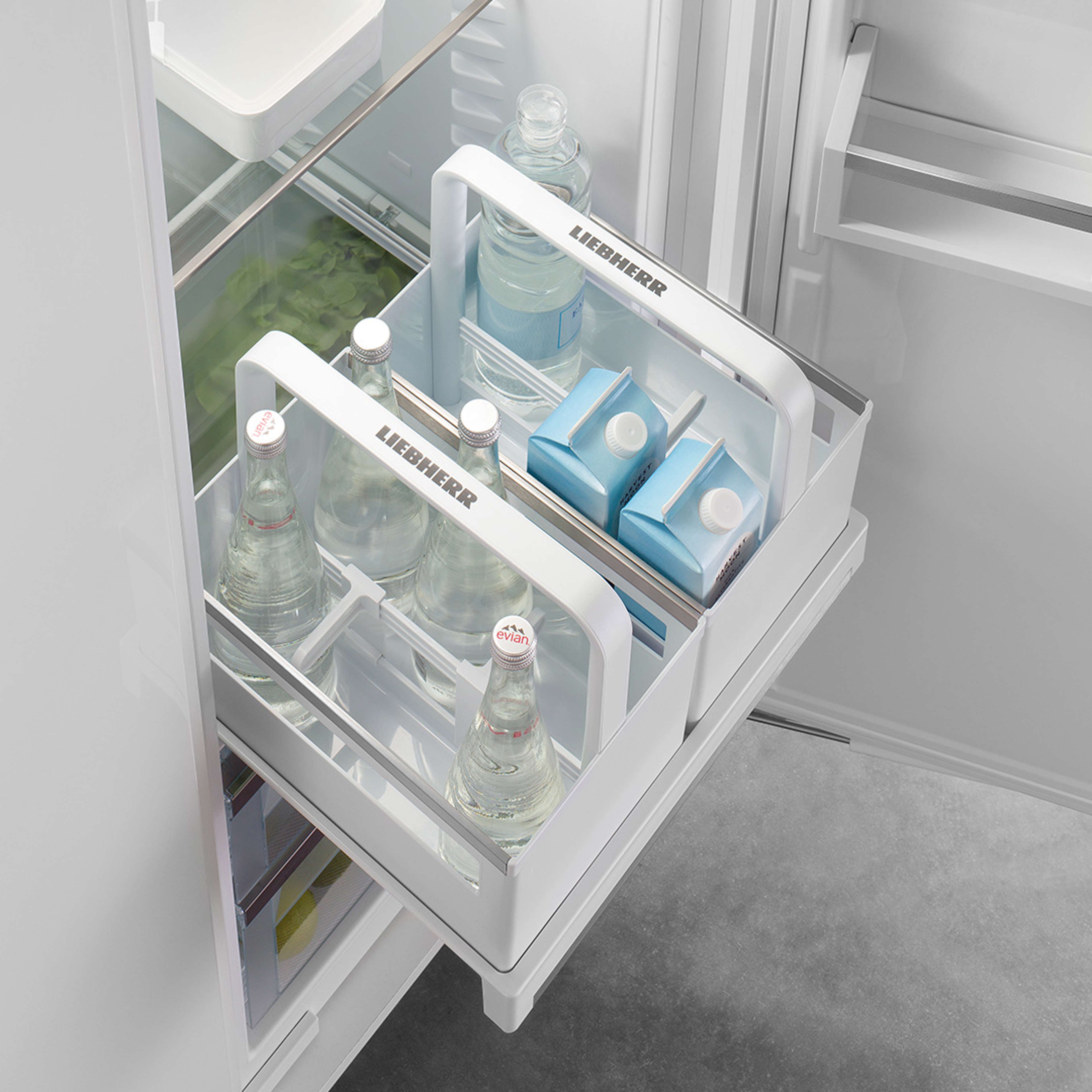 Ofta räcker inte förvaringsutrymmet i dörren för alla dina flaskor. Det har Liebherr löst på ett perfekt sätt. I flaskkorgarna finns det gott om plats för alla drycker. Du får till och med plats med en hel back öl eller läsk.
